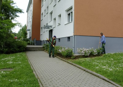 Kehrdienste auf befestigten Flächen und allgemeine Reinigungsarbeiten in den Außenanlagen.